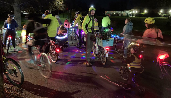 The end of last year saw lots of themed rides, with a Hallowe’en and Christmas Kidical Mass ride as well as an evening Glow Ride (which Kat Heath, Kidical Mass Chair, organises with a different hat on).